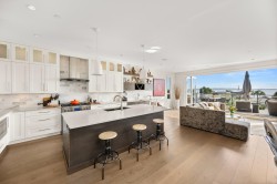 West Beach Living! Steps to White Rock promenade yet quietly perched on McDonald Avenue. Ocean view from top floor, kitchen with great room concept. Nano style doors open to a spacious deck making it perfect for entertaining! Elegant kitchen with gas range, lots of counter space, large island & wine bar. Quality crafted 3,596 sq ft home with double garage plus pkg for 2 cars. Middle level has 3 bdrms. Primary bedroom with a private deck, W/I closet and elegant ensuite. Features include A/C, Control 4, Sonos sound system, hardwood floors, glass railings. Bsmt is fully finished, 2 bedrooms, large rec room with separate entry to walk out yard. Possibly convert to 1 or 2 bdrm suite or keep as is. Enjoy walks, sunrise & sunsets, restaurants and all that beach living has to offer! Preview Video