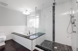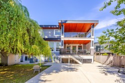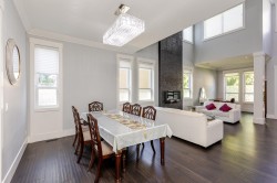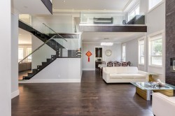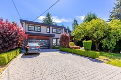 Contemporary West Coast style home with almost 6000 sqft on 7757 sqft rectangular sunny lot! total 8 bedrooms 8 bathrooms. radiant heat on all levels with air conditioning! Hardwood floor on main. high ceilings on main. wok kitchen. One bedroom on main. Family Room finished with elegant wood cabinets; Upstairs with 4 Bedrooms and all Ensuite and walk-in closets. Basement has 2 Bedroom Legal Suite with laundry + Another Suite; Media room with elegant Wet Bar & Powder Room. Hide-a-Hose Vacuum, 2 Large Sun Decks. Minutes walk to all level schools and shopping, bus stops. Easy to access highway and US border.