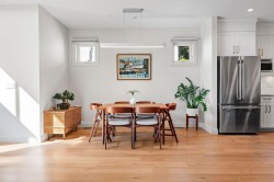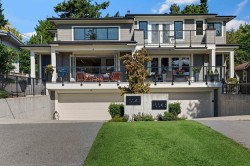 This half duplex blends thoughtful design with everyday comfort, featuring a main-floor primary suite and an airy open-concept layout with soaring ceilings. Eclipse doors extend the living space onto a sun-filled front deck, perfect for seamless indoor/outdoor living. The chef-inspired kitchen showcases a striking blue island with gold hardware and plenty of workspace. Upstairs offers two bedrooms and a full bath, while the lower level includes a rec room, multipurpose area, bedroom, and bathroom. Finishes include oak hardwood floors, custom built-ins, and a 30-amp plug for EV charging, plus a private backyard for kids, pets, or relaxing evenings. Set on a quiet street within walking distance to restaurants & the White Rock Pier. Catchment schools Peach Arch Elementary & Earl Marriott Sec