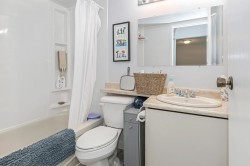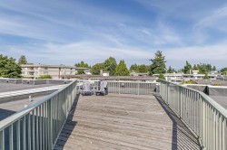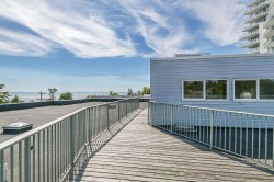 Welcome to this bright & airy top-floor 1-bedroom + den featuring updated flooring throughout. You'll love the quiet location, natural light & versatile den—complete w/ two closets & a skylight—ideal for home office, gym, or creative space. The open living area is enhanced by an electric fireplace & opens onto a spacious deck w/ access from both the living room & bedroom—perfect for morning coffee or evening relaxation.The kitchen includes a generous walk-in pantry & there is ample storage overall. Step outside & you’re just a quick walk from everything: shopping, restaurants, library, theatre & more. Exceptional walk score, this location can't be beat. Check out the incredible rooftop deck w/ panoramic ocean views—a perfect bonus!
