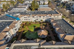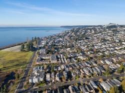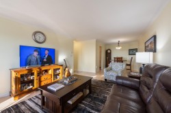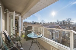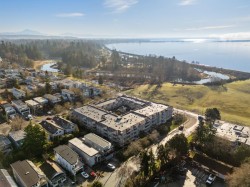 Quiet Tranquil Top Floor, South Facing, this home offers all day sunshine, ocean and landscaped courtyard views. Your Private Ocean view patio allows BBQS. Large living room 19'7/14'7 with gas fireplace. Formal dining room White Cabinets in kitchen. In-suite laundry. Large Primary bedroom w/ walk in closet and steam shower & heated floors in ensuite. Separated Second bedroom & full bath. Amenities include a guest suite for visitors, community party room, bike room, work bench, large locker ,side by side parking #312. Plenty of visitor parking. Ample green space in Courtyard. Transit 1/2 a blk away. Ocean & Beach across the Street .Easy access to Hwy 99.2 pets ok max Weight 40 LBS. Easy walk to shops & restaurants. Schools: Earl Marriot & Peace Arch. Gas incl in low strata fee $459.23.