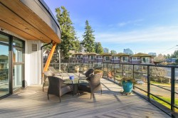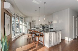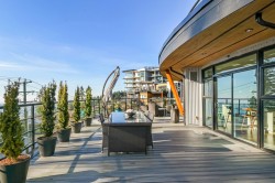 True luxury living awaits in this one-of-a-kind sub-penthouse at the award-winning Royce in White Rock. Enjoy breathtaking, south-facing panoramic ocean views and over 1,527sq. ft. of expansive patio space, perfect for outdoor entertaining or quiet relaxation. This beautifully designed open floor plan is thoughtfully laid out to maximize natural light and ocean views from nearly every room. The bright white kitchen showcases Viking appliances, custom quartz countertops, a seamless marble backsplash, and a massive island ideal for entertaining, complemented by a private dining room, heat pump with Air Conditioning. Building amenities include a large fitness centre and an elegant residents’ lounge for hosting gatherings. Includes 5 parking stalls and 2 storage lockers.