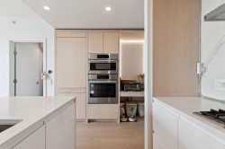 Breathtaking Ocean, Mountain & City Views at Miramar Village by BOSA! This stunning 2 bed, 2 bath home offers West exposure and luxury living in the heart of White Rock. Thoughtfully designed with Italian cabinetry, Bosch appliances, engineered hardwood flooring, quartz countertops, radiant in-floor heating in both bathrooms, and A/C for year-round comfort. Upgrades include electric blinds throughout, blackout blinds in bedrooms, custom closet organizers & 2 EV-ready parking stalls. Enjoy resort-style amenities including an outdoor pool w/ spa, upscale clubhouse & a 15,000 sqft rooftop terrace. Steps to shopping, dining, transit & just a short walk to White Rock Beach. Top school catchments: White Rock Elementary & Semiahmoo Secondary. Full-time concierge and 2-5-10 new home warranty incl.