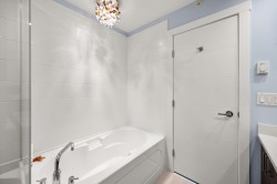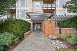 WINTER STREET! White Rock’s best-kept secret with an OCEAN VIEW! This top-floor unit is showered with an abundance of natural light from the large windows & high ceilings. Open living & dining area with access to a large south-facing balcony for enjoying the sunrise in the morning or sunset in the evening. 2 bedrooms, 2 full bathrooms PLUS a den outfitted with built-ins for the ultimate work from home space. Nicely appointed kitchen with stainless steel appliances including a gas stove & an island that accommodates 4 people. The generous primary bedroom has an ensuite with a separate shower plus a tub & a spacious walk-in closet. Live close to everything & want for nothing as you stroll to the beach, restaurants, shopping & more. Pets allowed with restrictions, non-smoking building.