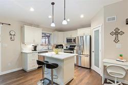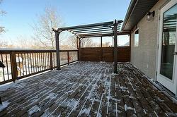 OPEN HOUSE, SAT , JAN 31, 2:30 - 4PM. Looking for a well maintained home with upgrades? Look no further! This lovely 4 bedroom home is sure to please! The main floor features luxury hardwood floors and vaulted ceiling throughout. The white kitchen has upgraded quartz countertops and backsplash for a sleek look. There are 2 bedrooms on the main floor, with the ensuite featuring a walk in shower. Moving downstairs, there is a kitchenette, rec room, 2 additional bedrooms, laundry and 3 piece bath with shower. This is a great space to host a movie night, or for elderly parents / adult kids to enjoy. Heated garage. A/C. Acrylic stucco. Moving outside, note the paved driveway, beautifully landscaped yard with firepit area, dog run, garden boxes with water taps plumbed in, oversized shed and deck with pergola! This home is on the edge of Grunthal, so enjoy the view of no backyard neighbours! Main upgrades over the last 6 years: luxurious hardwood floors, some carpet, countertops in kitchen / baths, kitchen appliances, washer/dryer, Cvac, water softener, most blinds, ensuite shower, downstairs shower, garden boxes, front door, t-bar ceiling and LED lighting in the basement rec room. Call to view!