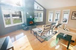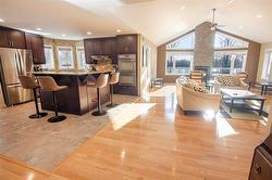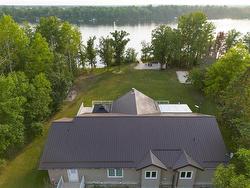 WATERFRONT LUXURY WITH SWEEPING RIVER VIEWS! Tucked at the end of a quiet road in a peaceful cottage-country community, this 2000SF custom-built waterfront home blends comfort, quality & nature. Panoramic river views from nearly every room, this 3BR/3BTH features a bright, open-concept layout w/vaulted ceilings, tri-pane windows & gleaming maple hrdwd. The spacious living rm, anchored by a floor-to-ceiling wood stove offers full-window views of the river. The kitchen impresses w/rich cabinetry, granite counters, stacked stone backsplash, SS appliances, dbl oven w/induction cooktop & lrg island. Full pantry & extended dining area add storage & style. Primary suite is a serene retreat w/5pc ensuite, dual closets & access to a sunroom lined w/windows—perfect for taking in river sunsets or enjoying your morning coffee. Outside: 60ft glass-railed deck, brand-new multi-tiered dock w/deep water access, new sprawling stone patio area. ICF foundation w/crawl space + half bsmt section for mechanicals. 30x30 insulated garage/workshop w/in-floor heating, 900SF loft & balcony w/stunning river views. Waterfront escape offering privacy, craftsmanship & incredible scenery. Most furnishings negotiable.