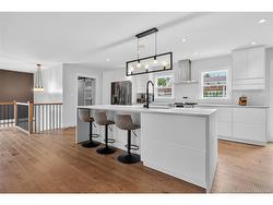 Turn-Key Home with Legal In-Law Suite – Fully Renovated & Move-In Ready.Welcome to this extensively renovated, turn-key residence that perfectly blends modern updates with timeless character. From the moment you arrive, you'll be drawn to the home's charming curb appeal, featuring tasteful wood accents at the entrance.Step inside to a spacious foyer that opens into a bright, open-concept living area. The expansive living room is highlighted by a stunning feature wall with a fireplace and TV accent.The heart of the home, the kitchen, offers a large island perfect for meal prep and casual gatherings. Ample cabinetry provides generous storage, while the adjacent dining area features patio doors leading to a private backyard and patio.The main level boasts a well-appointed primary suite complete with a walk-in closet and a 4PC ensuite. Two additional generously sized bedrooms and a beautifully 5PC main bathroom complete this end of the home.Located off the attached garage, the mudroom includes a 2PC powder room and laundry area.The basement offers additional living space, including a spacious family room. Also located on the lower level is a separate-entry in-law suite—ideal for multigenerational living or rental income with 2 bedrooms, a 4PC bathroom, kitchen, and a comfortable living area. It is equipped with its own meter and designated parking space for added independence and convenience.This property is a rare gem—contact your REALTOR® today to schedule a private viewing.