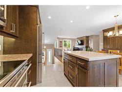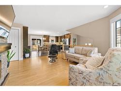 Welcome to 72 Pelagie, Dieppe. This meticulously maintained home offers fully ducted forced-air heating, an attached double garage, and significant updates completed over the past decade, including new windows and doors, updated siding, a fully renovated kitchen, and a newer roof. The bright, open-concept main level features an impressive kitchen with contemporary shaker cabinets, a quartz island, KitchenAid stainless steel appliances, new ceramic tile, and ample storage, creating the ideal gathering place for family and friends. The dining area flows seamlessly into an expansive back deck and screened gazebo, overlooking a manicured, fully fenced yard with easy-care perennials, perfect for outdoor living. Inside, the living room features a striking stone wall with a built-in electric fireplace and a custom wood mantle, blending warmth and modern elegance. Hunter Douglas window coverings, wired speakers, and an alarm system add comfort and security. Down the hall are three generous bedrooms and a renovated, spa-inspired bathroom with in-floor heating, a washer and dryer tucked behind double doors, a quartz vanity, a full wall mirror, custom cabinetry, modern lighting, and porcelain tile. The lower level, featuring oversized windows, expands your lifestyle with a spacious family room and wet bar, two additional large bedrooms, a full bath, and ample storage. This move-in-ready home truly has it all. Equalized billing for heat and lights is $397.
