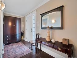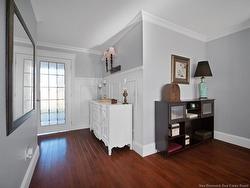 LOCATION, LOCATION on 1.5 acres with expansive mountain views overlooking the valley to be fully appreciated from the tall south facing windows. The luxury of a 3-car attached garage with 10' ceilings and just outside the city in a preferred area, is a bonus. The roomy entryway has a 2 Pc BR and in-floor heating, drying up any wet footwear. The kitchen has an eat-in nook, tall cupboards with glass doors, a wall oven, wine cooler and a 13' long granite counter that any cook would love. The kitchen opens into the dining room with a propane fireplace, a patio door leading to the deck offering a sunrise and a sunset view. The dining room opens into the living room which has built-ins surrounding a wood fireplace with a hidden wood pass-through eliminating any mess. The other side of the dining room leads into an office/sitting room then into the main bedroom ensuite which has an 8' long enclosed built-in for storage, a walk-in closet with laundry and a bathroom with a jetted 5 1/2' tub. The downstairs has a large cozy living area with a walkout patio door, a beautiful view, large propane fireplace, 4 Pc bathroom with sauna and 2 BRs. The extra large storage room has an area ready to be finished as a full kitchen, making the downstairs a luxury apartment or an Airbnb for added income. Roomy, cozy and easy to heat with 8" insulation on all outside walls - cool in the summer and warm in the winter. Located just 8 minutes from Crandall University and exit to TCH.