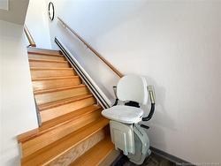 This well-kept townhouse is ideally located right in the middle of town, close to all amenities. The main level features a bright and welcoming open-concept layout, with the living room, dining area, and kitchen flowing seamlessly together. The kitchen has been updated with modern lighting, new countertops, and fresh hardware, creating a stylish and functional space. From the dining area, patio doors open to a brand-new deck and a private backyard complete with raised flower beds—perfect for gardening and outdoor enjoyment.Upstairs, you’ll find three generously sized bedrooms, including a primary suite with a walk-in closet and convenient access to the main bath. The bathroom has been refreshed with updated countertops, fixtures, and a new tub surround, giving it a fresh, modern feel. A spacious hallway leads to an additional storage room, providing plenty of space to keep things organized.Other highlights include a charming covered front porch ideal for enjoying the outdoors even on rainy days—and a chair lift on the staircase for easy access to the second floor. Comfort is a priority with two ductless heat pumps, offering both heating and cooling, and an average power bill of just $150/month.This home offers a prime location, thoughtful updates, and energy efficiency all in one package. Don’t miss your chance to see it for yourself.