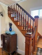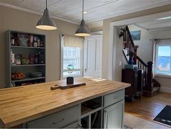 This charming three bedroom Cape Cod style home is located on a quiet property, offering ocean scenery from its location on the Welshpool Back Road. Relax on the front covered veranda, which bids a warm welcome to all who enter. Open the decorative yellow door to find a bright and spacious foyer & living room. Front windows spanning the width of the home allow for an abundance of light as well as comforting views of the sea. Pellet stove provides additional warmth & ambiance to the home. Patio door provides access to the deck overlooking the yard. Kitchen is inviting with a dining island that serves as the focal point of the room, as well as attractive cupboards, modern lighting & stainless steel appliances. Laundry, storage and a half bath are conveniently located in an addition off the kitchen. L shaped original staircase leads to the second level of living space. Fully renovated bathroom boasts a custom sit down shower and a beautiful vanity. Two of the three bedrooms offer water views from the upper level of the home. Lots of room in the treed yard for children & pets to play, safely contained by a perimeter fence. Raised building provides storage for outside items. Recent home energy evaluation resulted in the basement and attic being fully insulated, as well as the installation of a new heat pump furnace, with both heat & air ducted throughout the home for comfort during all seasons. New well pump, cap & well plumbing too! This impressive home awaits your visit!