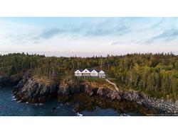The rugged beauty of Campobello Island perfectly compliments this majestic, modern estate, which sits on 137 acres of pristine oceanfront and untouched forests. Watch eagles soar & whales pass by as you sit on your impressive decks high overhead. With over 8,000sq ft of living space, there is room to breathe the salty sea air. As you pull up to the home you are immediately greeted with grandeur; you enter into a foyer leading to the great room w/ marble floors, 20ft maple ceilings, floor to ceilings windows & a large gas fireplace. The adjoining 1,000 sq ft kitchen is equally impressive w/ a 13ft island, double ovens, dishwashers & sinks, GE Monogram® appliances, marble countertops, large pantry & more stunning views. The primary suite feels like a private retreat, w/ a large bedroom/sitting room w/ gas fireplace, deck access, a walk-in closet & marble bathroom w/ large soaker tub & double shower. The office & large exercise room w/ sauna can also be found on this side of the estate. The upper level guest suite also feels grand w/ large sitting room w/ deck access, bedroom & marble bathroom. Access to the upper level 2-car garage, laundry room, powder room & loft complete the upstairs. The lower level of the home features 10-ft ceilings throughout & 3 guests suites all w/ deck access & en-suite marble baths. A recreation room & sitting area with wood fireplace are complimented by a beautiful copper wet bar. Watch sunrise & sunsets over the Bay of Fundy.