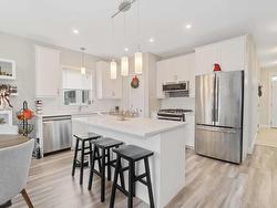The home you have been waiting for is 11 Poonam Crt. Exceptionally maintained spacious, bright, with economical heat pumps and with a profitable Airbnb. Carpet-free home features a welcoming foyer, powder room, open concept main floor showcasing a gorgeous kitchen with a built-in pantry, cook's dream kitchen, new gas stove, quartz countertop, dining area and a cozy living room. Hardwood stairs lead to the upper level with a massive primary room, ensuite bath, and a walk-in closet, 2 additional bedrooms, a 4 pc bath, linen closet and an expansive landing. Lower level has its own entrance, with a bedroom, 3pc bath and a rec room. Back yard is great for kids and adults who like to stay active without the hassle of lawn care. This home will not disappoint!!
