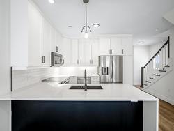 Welcome to 603 Cowie Hill Road, a beautifully upgraded end unit townhouse in Halifax’s west end, just three years young. This modern home offers over 2,200 square feet of finished living space with a thoughtful layout and high-end finishes throughout. The main floor features an open-concept kitchen, dining and living area, perfect for entertaining, with a stunning waterfall island, solid-surface countertops, tiled backsplash and cabinetry to the ceiling. A ductless mini-split provides efficient heating and cooling on both the main and upper levels, and a convenient powder room completes this floor. Upstairs you’ll find three bedrooms and two full bathrooms, including a spacious primary suite with a luxurious ensuite bath and generous walk-in closet. The lower level is fully finished with a bright rec room, a third full bathroom and walkout access to the backyard. Additional highlights include a heated, built-in single garage, paved driveway and low-maintenance yard. Located just minutes from the peninsula with easy access to transit, schools, shopping and parks, this one truly checks all the boxes.
