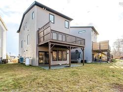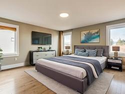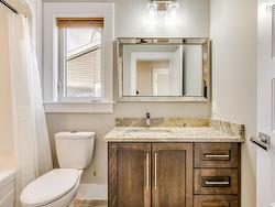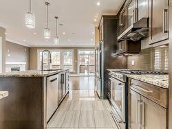 Welcome to Long Lake Village where you can enjoy the best of both worlds, just steps to the natural trails of Long Lake Provincial Park and only minutes to downtown and commuter routes. This executive home offers wonderful living spaces on all three levels - the open concept main living area on the second level features a dream kitchen with floor-to-ceiling cabinetry, an oversized central island with under mount sink, granite counters, a gas stove and high-end stainless steel appliances; at the back of the home there's a large living room/family room with a propane fireplace, sleek built-in shelving and patio doors to the 12x20 back deck and at the front there's a large dining room with a built in sideboard cabinet with solid surface countertop and plenty of storage, plus there's a convenient half bath. The top level offer a spacious primary bedroom suite, with a luxurious bathroom with double sinks and a tiled shower with glass door and a walk-in closet, plus 2 other large bedrooms with large closets, the 4 piece main bath, and a separate laundry room. The lower level features an open foyer, a spacious rec room (could be configured as a 4th bedroom or home office) with plenty of natural light and a patio door to the exposed aggregate patio and large back yard, plus storage under the stairs and the garage entry. This home has many extra bells & whistles, with quality finishes throughout and a larger and more private back yard than many on the street.