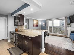 Enjoy stunning harbour views from every window in this bright 3-bedroom, 2-bath condo! The open-concept living and dining area features an electric fireplace and walkout to a private balcony, while the well-planned kitchen flows seamlessly into the main space – perfect for entertaining or unwinding at home. The primary suite offers a walk-in closet and ensuite, and the third bedroom, with its electric fireplace and custom built-ins, makes an ideal home office or den. Thoughtful details include an in-unit laundry room and a vent opening designed for easy connection of a portable AC unit. With a prime location just minutes from downtown Halifax, Bayers Lake, and all amenities, this condo combines comfort, style, and convenience with unbeatable views of the harbour, ships, and city lights.