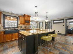 Stop searching—this is the one!!! Welcome to the desirable McDougall Heights Subdivision! This impressive two-story home offers over 4,000 square feet of finished living space, providing plenty of room for everyone to spread out. The main floor features a custom-built kitchen with beautiful cherry cabinets, pantry, and a center island, perfect for busy mornings or hosting friends. Throughout the home, you will notice high-quality craftsmanship and built-in surround sound that adds a modern touch to every room. The second level is home to four spacious bedrooms, including a primary suite designed for relaxation. This retreat features a 5-piece ensuite bath, walk-in closet and a new private balcony where you can enjoy some fresh air in peace. If you need more space, the lower level is fully finished and includes a large rec room with a cozy new propane fireplace, plus a dedicated area that works perfectly as a home theatre or a fifth bedroom. The outdoor living space has been majorly upgraded to help you make the most of the yard. The owners have added a new fence, a stylish pergola, and an expansive multi-level deck that is perfect for summer BBQs. They have also installed a pad & electrical hookups all ready for your hot tub, plus a new shed for extra storage. Whether you are relaxing on the front veranda or enjoying the new deck, this home is move-in ready and perfect for family life.