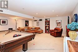This elegant three-bedroom executive townhome, located in The Classics of Aurora Woods, sits on a picturesque, mature lot backing onto a serene ravine a true wooded sanctuary in the heart of Aurora. Nestled on a private cul-de-sac with ample guest parking, it offers both privacy and convenience. Inside, hardwood floors run through the main and upper levels, complemented by a newer carpet runner on the wooden staircase. Soaring 9-foot ceilings with a dramatic cathedral peak enhance the spacious, airy feel of the main floor.The kitchen, beautifully remodelled in 2017, is both stylish and functional, featuring a large corner pantry, deep pot drawers, hidden utensil storage, and generous counter space. The flexible main floor layout allows you to customize your living space whether you prefer a main-floor office or den, a breakfast area, or an expanded family room as currently arranged. The dining room comfortably seats eight and has space for a sideboard, perfect for hosting. The inviting family room centers around a gas fireplace, flanked by windows and sliding doors that frame stunning views of the backyard deck, landscaped gardens, and ravine.Upstairs, the spacious primary suite easily fits a king-sized bed, side tables, and multiple dressers. Two bright windows overlook the manicured yard and ravine, while a walk-in closet, an additional closet, and a five-piece ensuite add to its comfort and practicality. The second and third bedrooms offer ample closet space and hardwood floors, served by a nearby main bathroom. The finished basement is an expansive, versatile space currently accommodating a large sectional, pool table, electric fireplace, and more. Whether you envision a home gym, a media lounge, or an entertainment hub, this level offers endless possibilities. Municipal address is 3 Senator Court. (id:7525)
