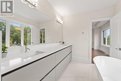 ABSOLUTELY STUNNING! This Brand-New "Green" and "Smart" executive residence sits proudly on a spectacular Cul-De-Sac Lot, backing and siding onto Serene Conservation Land and Golf Course in the prestigious ROYAL HILL COMMUNITY - an exclusive enclave of just 27 luxury homes surrounded by private walking trails in sought-after South Aurora. No Neighbours on the Back, Side, or Front - TOTAL PRIVACY! An architectural masterpiece featuring 10-ft ceilings on the main floor, 9-ft ceilings on the second, rich hardwood and porcelain floors, and a striking oak staircase with sleek metal pickets. The open-concept layout is filled with natural light from expansive windows. The chef-inspired kitchen showcases quartz countertops, an oversized island with breakfast bar, extended soft-close cabinetry, a modern backsplash, and a fully integrated premium appliance package including Sub-Zero fridge, ASKO dishwasher, 36" Wolf 6-burner gas range, 30" Wolf microwave, and 36" Wolf exhaust hood fan. Equipped with central air conditioning, rough-in central vacuum, and BBQ gas line. TARION Warranty included. The elegant family room offers a gas fireplace and walk-out to the backyard, while formal living and dining rooms feature coffered ceilings and a second gas fireplace - ideal for entertaining. Upstairs, the primary suite impresses with a detailed ceiling, His-And-Hers Custom Walk-In Closets with built-ins, and a spa-style ensuite complete with heated floors, freestanding tub, and glass-enclosed shower. Spacious secondary bedrooms feature large closets and private or semi-ensuite baths. Convenient second-floor laundry adds practicality. The walk-out basement is fully insulated and ready for customization, complete with rough-ins for a wet bar, 3-piece bath, and laundry. Smart home systems and energy-efficient features are seamlessly integrated throughout. Located just minutes from Yonge Street, GO Transit, top-rated schools, parks, trails, and major highways. (id:7525)