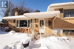 This immaculate three-bedroom, two-bathroom side-split is a true dream home. Located on a quiet cul-de-sac in a fantastic neighborhood, the property borders a peaceful seniors' residence and is within walking distance of the YMCA, schools, and churches. The inviting main floor features beautiful original hardwood floors, a large kitchen with ample counter space, and a separate dining room. A nice four-season sunroom overlooking a large, pie-shaped backyard. The home offers three well-sized bedrooms and a four-piece bathroom. The lower level includes a spacious recreation room with a gas fireplace, a separate laundry room with a second 2-piece bathroom, and a walk-up entrance to the backyard. With plenty of storage and potential for an in-law suite, this home is as functional as it is charming. (id:7525)
