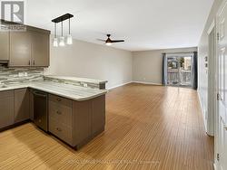 Welcome to this charming townhouse bungalow offering low-maintenance living in a comfortable and well-designed layout. With an attached single-car garage and thoughtful updates throughout, this home is ideal for anyone seeking convenience and modern comfort. Step inside to a bright front bedroom, perfect for a guest room, home office, or cozy retreat. The main level continues with an open-concept kitchen, living, and dining area, ideal for both everyday living and entertaining. The updated kitchen features modern appliances and ample workspace, while the living room offers direct access to the rear yard for easy outdoor enjoyment. The spacious primary bedroom includes a walk-in closet and a cheater ensuite door to the well-appointed 4-piece main bathroom. Main floor laundry adds practicality and ease to daily routines. The fully finished lower level provides exceptional versatility with a generous recreation room, a second full bathroom, and a large third bedroom. An additional office/flex room offers the potential for a fourth bedroom or hobby space. A sizeable utility room and convenient under-stair storage ensure plenty of room for organization. (id:7525)