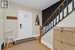Located in Belleville's desirable east end, this beautiful all-brick two-storey home offers timeless charm and modern updates. The thoughtfully landscaped lot features a fully fenced backyard, a one-and-a-half car garage, and a welcoming front porch that sets the tone for what's inside. Step into a warm and inviting layout featuring a formal living room with gleaming hardwood floors, a separate dining room, and a sunken family room with a cozy gas fireplace and striking brick feature wall. The spacious kitchen overlooks the family room and offers a perfect layout for entertaining. A bright three-season sun-room with a doggie door leads seamlessly to the private backyard oasis ideal for families and pet lovers. Upstairs you'll find three generous bedrooms and a full bathroom. The main floor includes a convenient laundry area, a second bathroom, and an additional flex space for an office or playroom. Recent updates include a 2025 natural gas furnace, central air, new fascia and soffit, and hardwood flooring in key areas. Appliances are included: gas stove, fridge, washer, dryer, and dishwasher. Centrally located within walking distance to schools, parks, shopping, and city transit. Just 10 minutes to Highway 401, 15 minutes to CFB Trenton, and close to Belleville General Hospital. A perfect blend of comfort, space, and location this is a home you'll want to see. (id:7525)