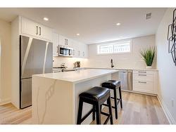 FULLY FURNISHED short or long term Rental - Stunning Luxury 1-Bed, 1-Bath Suite Located In Boutique Building. Elegantly Appointed And Beautifully Upgraded Suite Features A Purposeful Layout With Wide Plank Luxury Vinyl Hardwood Throughout The Open Concept Kitchen, Living Room And Office Nook.This Bright And Spacious Fully Furnished Suite Features A Comfortable Living Space With Large Sectional Sofa, Display Shelving, Smart TV, And Contemporary Office Desk. Enjoy The Chef-Style Kitchen, Complete With Floor To Ceiling White Shaker Cabinetry, Premium Quartz Countertop And Large Waterfall Island, Full-Sized Stainless-Steel Appliances, Including Dishwasher And Built-In Microwave, Tile Backsplash And Under cab Lighting. Large Primary Bedroom Is Serene With Neutral Colour Palette, Nightstands, Quality Linens, And Plenty Of Storage With A Wall-To-Wall Closet. Spa-Inspired Bathroom With Glass Walk-In Shower Featuring Rain Head, Adjustable Handheld Shower Arm And Modern Quartz Double Vanity. Separate Laundry Room With Full-Sized Washer And Dryer. Suite Includes 2 Car Parking. Located Steps To The Exquisite Downtown Burlington Waterfront, Spencer Smith Park, Boutique Shops, Restaurants, QEW, 403, 407 And Go. No Smokers.