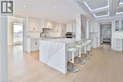 Waterfront luxury in the sky at Bunton’s Wharf. Unit 904 is a rare 2,400 sq ft custom-built bungalow-style condo where unobstructed Lake Ontario views greet you the moment you walk in. Refined “quiet luxury” throughout with Level 5 finished walls creating flawless light reflection as the lake pours into the living space. Exceptional outdoor living includes a 520 sq ft terrace overlooking Spencer Smith Park—ideal for entertaining, festivals, sunsets—and a private 80 sq ft balcony for peaceful mornings with pier views. The third bedroom is thoughtfully designed with a built-in Murphy bed, offering the flexibility to function as a comfortable guest room, home office, or multi-purpose space. Only three OTHER units on the floor ensure privacy and tranquility. Includes two side-by-side parking spaces and a same-floor storage locker. Steps to Brant Street dining, the pier, waterfront trails, and the Art Gallery of Burlington. A truly iconic Burlington lifestyle—without compromise. (id:7525)