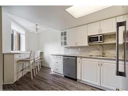 ***NO CONDO FEES FOR SIX MONTHS...Vendor offering maintenance fees paid up front.*** Discover the perfect mix of comfort and convenience in this beautifully maintained 1-bedroom, 1-bath condo in the sought-after Walker’s Square community. The open layout showcases a bright and spacious living area and a smartly designed eat-in kitchen with abundant white cabinetry and stainless-steel appliances. The generously sized primary bedroom pairs perfectly with the convenience of in-suite laundry and 4-piece bathroom. Step onto your private balcony to unwind amidst mature trees and meticulously landscaped grounds—a tranquil park-like backdrop that offers both privacy and natural beauty. The building is smoke-free and impeccably cared for, providing a peaceful, worry-free lifestyle. Enjoy an exclusive underground parking and the added bonus of a locker space conveniently located on the same level as the suite. Exceptional on-site amenities include a party room, fitness centre, car wash station, and a community patio with BBQ area—ideal for entertaining or relaxing with neighbours. All this just steps from shopping, transit and everyday essentials, with quick access to the 403, QEW and GO Station. Affordable, convenient living in a truly desirable location—your new home awaits! Some photos have been virtually staged.