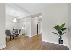 Welcome to this beautifully newly renovated large one-bedroom, two-bathroom condo with serene garden views. This move in ready home provides a serene retreat with modern touches throughout. Parking spot #16 and locker #104. Visitors parking has access to EV chargers. Step inside to find 9 foot ceilings,freshly painted interiors and stylish, updated vinyl flooring that flows seamlessly through the living spaces. The spacious living area is filled with natural light and is overlooking a trees with manicured park and meadow views. This balcony has privacy and tranquility. The kitchen was thoughtfully updated with designer finishes, offering ample cabinetry, under cabinet lighting, quartz countertops, under mount sink with goose neck tap, and LG fridge with ice maker and filtered water, LG glass top range, LG built in microwave and fan, and LG dishwasher. These appliances have just been installed and have never been used. Condo Fee is $639 per month includes FIBE cable and internet, parking, water, heat and A/C via a heat pump you own, building maintenance, and dial up security entrance. Adjacent to the entry door is washer/dryer closet. The generously sized bedroom includes 2 closets, a walk-in and standard. There is room for a desk and chair. The Spa like en-suite bathroom newly installed carara pocelain tile, shower and tub combination. A second 2-piece bathroom adds flexibility for guests or work-from-home living. With its tranquil setting, modern updates, and thoughtful layout, this condo is an ideal choice for those seeking a low-maintenance lifestyle with all the comforts of home. The second floor is most sought after. You can move in immediately and live the good life.