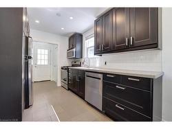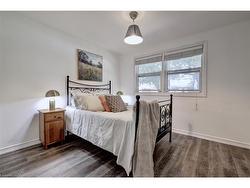 Gorgeous Detached Home on an Oversized Sunny Lot in Burlington!Tucked away on a quiet, leafy street, this charming home sits in a fantastic, family-friendly neighbourhood of single-family homes interwoven with parks, trails, wooded areas, sports facilities, and community centres.A welcoming south-facing covered porch sets the tone as you step inside this move-in-ready home. Mature hedges surround the property, offering privacy and a serene setting.The renovated IKEA kitchen features ample counter space, large pantry with pull out drawers, LED pot lights, porcelain floors, and HiSense stainless steel appliances. An open-concept breakfast room flows seamlessly to the oversized three-tier deck and sprawling lawn—perfect for entertaining & family fun.The bright and inviting living room boasts a large corner window and modern vinyl flooring. The main floor includes a primary bedroom, while the second floor offers a renovated bathroom with porcelain floors, a large vanity, a Kohler toilet & a sunny window, along with two additional bedrooms, each with walk-in closets & shelving. Brand new hardwods upstairs&staircase.The lower level, with a separate backyard entrance, provides excellent additional living space. It includes a spacious recreation room with new vinyl flooring, an above-grade window, and built-in shelving, plus a modern bathroom with built-in shower. New sump pump water proofingcompleted in 2024. A bright laundry room with above-grade window, built-in shelving & ample storage completes this level. Very flexible layout with main floor bedroom & lower level easily converted to an apartment or in-law suitePrime Location: Easy access to Highway 407 & 403/QEW, Burlington GO Station, three major shopping and power centres, Mountainside Rec Centre, Costco, and beautiful Downtown Burlington with its world-class dining, Brant Street Pier, waterfront trails, Port Nelson Park on Lake Ontario, the Royal Botanical Gardens, and Joseph Brant Hospital.
