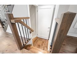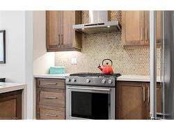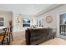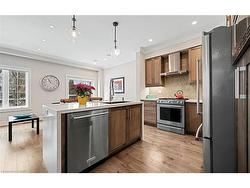 Welcome to refined executive living just moments from Downtown Burlington and the vibrant Brant Streetcorridor. This rare end-unit condo townhouse offers approx. 2,000 sq. ft. of beautifully finished space(1,473 sq. ft. above grade + 527 sq. ft. below), blending upscale design with unmatched urban conveniencenear the lakefront, boutique shops, dining, Spencer Smith Park, GO Transit, and major highways.The bright, open-concept main level features 9-ft ceilings, rich flooring, designer lighting, andexpansive windows that maximize natural light—an advantage of the premium end-unit location. Thechef-inspired KitchenAid kitchen impresses with custom cabinetry, a waterfall quartz island, and a5-burner gas range, all flowing into the elegant dining and living areas. A striking stone gas fireplacewith custom built-ins, a convenient 2-piece powder room, and whole-home audio with integrated hometheatre elevate the space for everyday comfort and high-end entertaining.Upstairs, three generous bedrooms include a serene primary retreat with walk-in closet and spa-likeensuite. A stylish 4-piece main bath and second-floor laundry add to the thoughtful executive design.The fully finished lower level extends the lifestyle with a refined recreation room featuring wood-lookflooring, LED pot lights, frosted glass doors, and a spa-inspired 3-piece bath with heated floors—idealfor a media room, office, gym, or guest suite.Smart home upgrades include Lutron lighting and Google Nest controls, providing modern comfort andefficiency.Set within a top-rated school district and close to parks, trails, and Burlington’s signature waterfront,this home delivers the perfect blend of luxury, location, and lifestyle—ideal for professionals,downsizers, and families seeking executive living near Burlington’s most coveted amenities.
