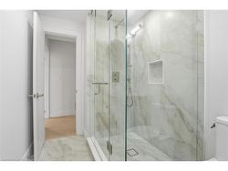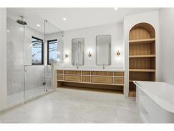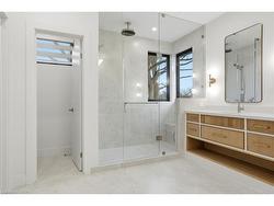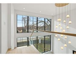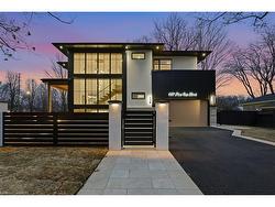 Ultimate Privacy & Security, A gated retreat in Central Burlington. brand new Custom Luxury home in coveted Tuck School District , a most sought-after neighbourhood, set on a fully fenced double lot with mature trees. Chef-inspired kitchen featuring ceiling-height white oak cabinetry, quartz counters & marble backsplash, custom oval lighting above a spectacular center island with seamless quartz skirt, and top-of-the-line SS appliances, creating a flow that anchors this beautifully designed open concept gallery to entertain guests. Hidden doors lead to the custom millwork mudroom and access to the double garage, while oversized sliding doors open to a covered, heated patio with a Napoleon outdoor kitchen, granite counters, and direct access to a swim-spa hot tub, perfect for year-round entertaining. Living and dining areas boast soaring ceilings from 10 to 24 feet, integrated lighting, a stone fireplace surrounded by windows and custom built-ins. Exceptional wood custom front entry door, an eye catching floating staircase with complete light flow of windows as the back drop. Automated blinds to give you that privacy when needed. Upstairs, the master suite offers complete isolation with double-door entry, a walk-in closet/organizers, and a spa-inspired ensuite, double sinks, soaker jet tub,heated floors and separate shower. 3 additional generously sized bedrooms each include private ensuites, walk-in closets/organizers. All windows feature blinds for ultimate convenience and luxury. Fully finished lower level features above-grade windows, lots of storage, bedroom with 3pc bathroom, office space, and as a bonus, a walk-up to the backyard, perfect for jumping straight into the swim-spa. Ideal for in-law living/ teen/ nanny/guests, or games/media space. Professionally landscaped, paved driveway for four vehicles along with a double car garage this home also includes extensive mechanical and structural upgrades smart-home wiring, and so much more.