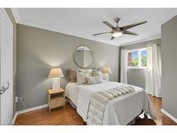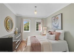 Highly sought after enclave, on the Burlington / Oakville border, this tastefully appointed townhouse is located in a private quiet family friendly neighbourhood. This meticulously maintained home offers 3 bedrooms, 1.5 bathrooms, almost 2000 sqft of living space on a lovely lot with no rear neighbors! open to a bright, sun filled foyer, relax or entertain in the open concept living and dining area, or step out to the fully fenced backyard with aggregate concrete patio and lovely garden. The 2nd level layout offers a large primary bedroom with 2 closets, 2nd and 3rd bedrooms generous in size, and a 4pc bathroom. The finished lower level has a large rec room, laundry room, and an abundance of storage. This home offers a single car garage and additional parking in the driveway. Conveniently located near schools, Sherwood Forest Park, restaurants, shopping, transit, QEW, 403, 407 and GO. Well managed complex with abundance of visitor parking and low condo fee. Welcome Home!