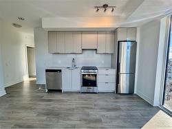 Brand New Downtown Burlington Condo with Lake Views!Welcome to Martha James Condos by Mattamy. This stunning brand new 2 bedroom, 2 bath suite provides modern living in the heart of downtown Burlington with beautiful views of downtown and Lake Ontario. Featuring 789 sq. ft. of thoughtfully designed interior space plus a 78 sq. ft. balcony, this bright unit boasts upgraded fixtures and appliances throughout. The open-concept kitchen and living area is perfect for everyday living and entertaining, with direct access to the balcony. Enjoy the convenience of in-suite laundry, a storage locker, and 1 underground parking space (#531). Residents can enjoy several common spaces including a sate of the art exercise room & yoga studio, private lounge/ party room and pet washing station. (Pet restrictions apply).Ideally located steps to restaurants, shopping, parks, transit, and schools, this is urban living at its best. A fantastic opportunity to lease a brand new condo in one of Burlington’s most sought-after developments.