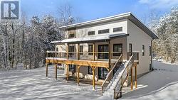 Welcome to this bright, spacious and contemporary bungalow, perfectly set on a stunning wooded 1.93 acre lot in one of the areas most sought after neighborhood's. This brand-new build combines modern design with high-quality finishes and the peaceful charm of a private, treed setting. The home features an open-concept floor plan with soaring vaulted ceilings and beautiful hardwood flooring throughout the main level. Large windows fill the space with natural light, while the spacious living and dining areas flow seamlessly to the kitchen and out to the large covered rear deck ideal for relaxing and entertaining while surrounded by nature. Offering 2 bedrooms and 2 bathrooms (there is also a 3rd bath plumbed in the basement), including a luxurious ensuite, this home is thoughtfully designed for comfort and style. The full walkout basement provides excellent potential for additional living space, hobbies, or storage. You will be wowed by the beautiful bright and spacious attached two-car garage. Opportunity to enjoy contemporary living in a private, wooded setting this home is move-in ready and has a full Tarion Warranty. If Modern Country Hideaway is your vibe - it is here - waiting for you!! (id:7525)