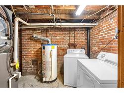 I love it! This charming brick townhouse is the perfect starter home and is solid from top to bottom with a new TPO roof installed in 2022 and hassle-free brick exterior. Front and back porch have been updated, so no worries there. Lots of convenience with its unique property lines that include a rear yard and parking space - the only one with parking. The home backs onto Grant street with access from parking space/backyard to either the basement or kitchen via the back porch. The open concept kitchen/dining room has plenty of room for a large table and island, with linoleum flooring and great circulation with entrance from front foyer and living room with pocket door. Front foyer and living room face Grand Ave and have hardwood flooring. Upstairs are three bedrooms and a good sized bathroom with tub/shower combo and built-in storage and linen closet. The basement is partially above grade with lots of daylight from front and rear windows, with a large rec room that just needs some carpet and a couple touch ups and it is ready for use. The rear half of the basement is storage space with shelving and a laundry/utility room with washer and dryer and walk-out to backyard - great for bikes and larger items. Reduce your exposure to eavestroughs, fences, crawlspaces, shingle roofs, siding and all the other problems that come with a wood framed starter home - Brick townhouses have been the logical choice in major cities for over a century. Very low taxes are the added bonus at $155per month for 2025. Look it over but don't overlook it!