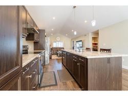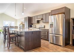 Better than new! Built in 2023, this modern Home offers impeccable style, function, and comfort—all without the wait of new construction. The stunning curb appeal draws you in, while the spacious and open-concept interior impresses at every turn. Vaulted ceilings, luxury vinyl flooring, and custom lighting highlight the main floor, anchored by a gorgeous chef’s kitchen , stainless steel appliances, soft-close cabinetry, and a statement island perfect for entertaining.The primary suite offers a walk-in closet and ensuite . The lower level is fully finished with a large family room, two additional bedrooms, and a full bath—ideal for family, guests, or a home office setup.Enjoy outdoor living with a covered back deck overlooking a fully fenced and professionally landscaped yard. Located in a desirable newer subdivision, this turnkey home is thoughtfully upgraded and move-in ready.