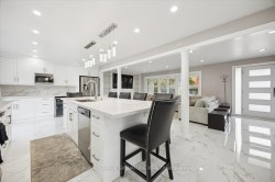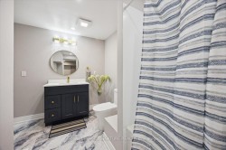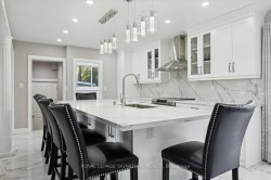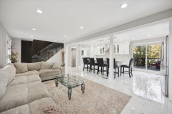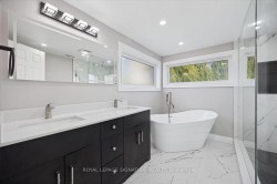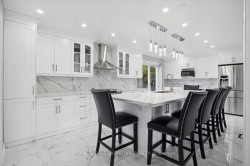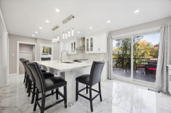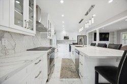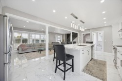 Welcome to Mitchell Corners in the heart of Clarington - where modern luxury meets timeless country charm. This beautifully renovated 5+1 bedroom, 4-bathroom home is tucked away on a quiet side street, offering the perfect blend of sophistication,functionality, and serene living. From the moment you arrive, the oversized wrap-around driveway - with space for 12+ vehicles- and stamped concrete walkway and porch create a warm, inviting first impression. Step inside to discover a pristine, open-concept main floor that seamlessly connects the kitchen, dining, and living areas - ideal for everyday living and effortless entertaining. At the heart of the home is the brand-new (2025) chef's kitchen, a true showstopper featuring an oversized quartz island with seating for eight, matching quartz countertops and backsplash, soft-close cabinetry with glass display panels, a built-in beverage centre and microwave, and sleek pot lighting to accent every detail. The spacious dining and living areas are anchored by a custom-designed TV wall unit, while 24x24 luxury tiles flow throughout the main level, transitioning to new vinyl flooring in the fully finished basement - offering style and durability. Upstairs, a striking glass-panel staircase framed by a fluted accent wall and crowned with a grand chandelier adds a touch of refined elegance and warmth. All four bathrooms have been thoughtfully renovated with contemporary fixtures and quality finishes, and a fresh coat of paint throughout enhances the home's bright, airy ambiance. Enjoy peace of mind with a new furnace and AC (2022), upgraded lighting throughout the home,convenient upper-level laundry, and ample space ideal for large or multi-generational families. This move-in-ready home is a rare gem in Mitchell Corners - offering the best of both worlds: elevated, modern design in a peaceful, country setting just minutes from highways, amenities, and top-rated schools.