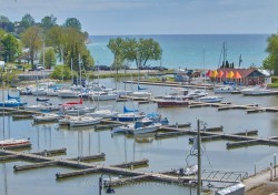 Spacious 749 sq ft 1+1 unit in the heart of the Port of Newcastle, overlooking the breathtaking views of Newcastle Marina and Lake Ontario. 2 Baths for your convenience and privacy. Open Concept, sun filled unit with upgraded high kitchen cabinets, quartz Countertops and breakfast bar. Upgraded flooring in combined Living and Dining rooms. Enjoy a walkout access to the glass fenced Terrace with clear panoramic view of the Marina and Lake Ontario. The Primary bedroom is a true sanctuary with gorgeous view from the large window, a walk in closet and 3 pc ensuite bathroom with frameless standup shower. Spacious Den perfect for an office setting or an extra bedroom. Featuring an ensuite Laundry room with a stackable washer and dryer, S.S. Fridge, S.S. Stove, S.S. Dishwasher and Range Vent. Plenty of visitor parking. Steps to Lake, Park and all amenities. Enjoy access to The Admiral Club where you can jump into the indoor pool , keep fit at the gym or have launch/ Dinner at the restaurant, or maybe read a book at the library or play a game of Billiard, or simply sit down, relax and watch a movie. When ready to party invite your friends or family to the party room for your special occasion.