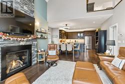 Welcome to this 4-bedroom, 4-bathroom executive home in the prestigious Silver Beach waterfront community on Kashagawigamog Lake, part of the sought-after 5-lake chain. With 2,955 sq. ft. of refined living space, this home combines quality craftsmanship, luxury finishes, and spectacular lake views.The foyer offers keyless entry, retractable screen, and tile floors leading to a gourmet kitchen with upgraded cabinetry, granite counters, under-cabinet lighting, sit-up area, stainless steel appliances, and elegant fixtures. The great room impresses with cathedral ceilings, a stunning floor-to-ceiling stone propane fireplace, hardwood floors, soaring windows, and walkout to a lakeside composite deck featuring a cedar timber-frame pergola and BBQ area and endless lakeviews.The primary suite provides a peaceful retreat with walkout to the deck and awning, ceiling fan, ensuite with heated floors and glass shower. The upper level offers a bright family room with glass panels overlooking the great room, high ceilings, hardwood flooring, 2 bedrooms, carpeted, ceiling fans, and custom blinds, while a walk-in closet area adds generous storage and 4pc bath with soaker tub.The lower level features a spacious rec room with propane fireplace, pot lights, and walkout to an interlocking lakeside patio. A guest suite offers a walkout to waterside patio, walk-in closet, and 4-pc ensuite. Additional highlights include, all bathrooms with heated floors, a multi-zone HVAC system, new hot water on demand (2025), 18W Generac generator, NFTC fibre optics, and a heated, insulated garage with storage and retractable screen. Exterior upgrades include programmable soffit lighting, glass railings, firepit area, and under-deck shielding.Enjoy exclusive access to the Silver Beach Clubhouse featuring a grand hall, kitchen, fitness center, games room, guest suite, two beaches & trails, close to Haliburton for all your amenities. Dock slip available to purchase ($25K). See full list of features. (id:7525)