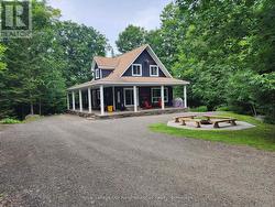 Welcome to 1042 Ski Ridge Trail.This 4 bedroom masterpiece offers convenient ski-in/ski-out access to Sir Sams Ski & Ride. Privately situated on 1.4 acres of pristine forest offering peace and tranquillity. The main floor consists of a stunning open concept kitchen/dining room combination and cozy living room along with 1 bedroom and 4-piece bath. 2nd floor consists of 3 additional bedrooms including primary bedroom and 3-piece bath. Fully finished basement offers additional living space, including recreation room, wet bar, games room and 3-piece bath. Basement walks out to beautiful patio and hot tub. Enjoy roaring fires out front and sip your favourite drink on the stunning covered custom stone wrap around porch. Enjoy relaxing evenings in the charming and spacious authentic wood burning outdoor sauna. Home is complete with multi-camera security system and EV fast charging station. Private, secondary driveway located on the back side of the property leading to endless possibilities. During the winter months, enjoy ski-in/ski-out access to the ski hill, double the fun with bike-in/bike-out access to the incredible bike trails during the rest of the year. There is never a dull moment here with Hiking, ATVing, snowmobiling and much more at your finger tips,, the possibilities are endless! 10 minute walk to a beautiful beach on Eagle Lake. (id:7525)