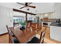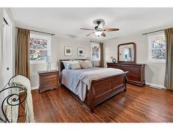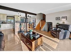 OUTSTANDING LOCATION MINUTES TO BEAMER FALLS – This beautifully maintained 4-level side split sits on a stunning 0.49 acre lot surrounded by an orchard in front, open field to the side, and mature forest behind. Enjoy walking distance to Beamer Conservation Area and just a 20-minute walk to downtown Grimsby. Step inside to a bright, inviting main-floor flex space featuring a cozy gas fireplace and serene backyard views—perfect for a den or home office. Upstairs, the open-concept living and dining area offers Maple hardwood flooring and a charming bay window overlooking the orchard. The updated kitchen includes a large island with leathered granite counters, custom cabinetry, stainless steel appliances, and patio doors leading to an oversized deck ideal for entertaining. The upper level features original hardwood floors, a spacious primary bedroom with ensuite privilege to the 4-piece bath, plus two additional bedrooms—all offering beautiful views. The lower level is warm and welcoming with two large windows, a comfortable rec room, and a combined laundry/utility room. Outside, enjoy exceptional outdoor features including a greenhouse for gardeners, a children’s playhouse, and a 15 x 25 ft workshop. Additional highlights include an attached single-car garage, parking for multiple vehicles, a large vegetable garden, and mature landscaping. This is a truly special property in one of Grimsby’s most picturesque settings close to Bruce Trail and QEW.