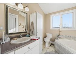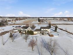 Set on nearly 20 acres with dramatic front and rear views, this custom-built 2,190 sq. ft. Cape Cod–style home offers the perfect blend of space, craftsmanship, and country living just minutes from Smithville and Grimsby. The main floor features a welcoming foyer with hardwood floors and oak staircase, a luxurious kitchen with granite counters, dark maple cabinetry, double pantry, breakfast island and eat-in area, a sunken family room with gas fireplace, separate living/dining room with bay window, private den with French doors, oversized laundry/mudroom, and a 2-piece bath with granite counter. Upstairs offers three bedrooms including a primary suite with vaulted ceiling, walk-in closet, and 4-piece ensuite with whirlpool tub and separate shower. The finished lower level includes a gym, fourth bedroom, rough-in for bath, and ample storage. Outdoor highlights include an interlock walkway, multi-level cedar deck with flower boxes and pool deck. Completing the property are a double attached garage and a separate two-storey double garage with workshop and finished upper-level office or games room, its own heating and A/C, and walkout to a deck—an exceptional rural retreat with unmatched versatility.