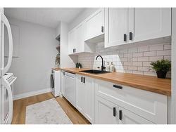 Welcome to 102-105 Conroy Crescent, a bright, NEWLY RENOVATED, 2-bedroom condo backing onto peaceful green space and scenic trails that lead to the river! With a completely refreshed interior and a location surrounded by everyday conveniences, this home offers unbeatable value for first-time buyers, investors and downsizers alike. Step inside and you’ll immediately notice the brand-new flooring and the tastefully renovated kitchen, featuring crisp white shaker cabinetry, butcher-block countertops, subway tile backsplash, modern black hardware and a sleek black sink. The thoughtful addition of open shelving and in-suite laundry makes this kitchen as functional as it is stylish. The spacious living and dining area is flooded with natural light from a full wall of windows. Freshly updated with neutral wide-plank flooring, this open-concept space is perfect for both relaxing and entertaining. Sliding doors lead to your large private balcony overlooking greenery-an ideal spot for your morning coffee or unwinding at the end of the day. The generously sized primary bedroom offers plenty of room for a king-size bed, while the second bedroom is perfect for guests, a home office or a roommate. A modern 4-piece bathroom completes the unit with updated vanity, fixtures and finishes. This condo includes an oversized parking spot located right next to the back building entrance, plus a convenient storage locker. The unit is situated on the main floor in a building with no elevator, making grocery trips and daily access a breeze. Just steps away is a bus stop with a direct route to the University of Guelph. You’re also minutes from Stone Road Mall, LCBO, Shoppers, restaurants, banks, Dovercliffe Park and quick access to the Hanlon Parkway—perfect for commuters. Freshly renovated, move-in ready and set in a peaceful yet central location—this is an opportunity you won’t want to miss!