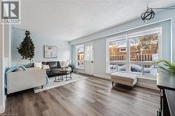 Tucked away in one of Guelph's best-kept secrets, this charming townhouse complex offers the perfect blend of convenience and community. Surrounded by mature greenery and close to all amenities, it truly feels like a little neighbourhood of its own. Welcome to this beautifully maintained end-unit townhouse, where thoughtful updates and pride of ownership shine throughout. The main floor has been fully updated and features a lovely modern kitchen with newer appliances, stylish new flooring, and contemporary light fixtures that create a bright and inviting atmosphere. Upstairs, you'll find three generously sized bedrooms, offering plenty of space for family, guests, or a home office. The finished recreation room in the basement provides additional living space - perfect for movie nights, a playroom, or a cozy retreat. Step outside to your private, fully fenced back patio, ideal for summer barbecues, morning coffee, or simply unwinding at the end of the day. Lovingly cared for and move-in ready, this home is waiting for its next owners to settle in and make it their own. A rare opportunity to enjoy low-maintenance living in a wonderful community you'll be proud to call home. (id:7525)