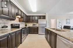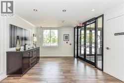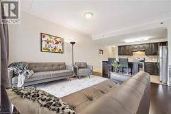 This main-floor executive suite offers the perfect blend of luxury, convenience, and location. Situated in an amazing east-facing position overlooking the park, this spacious 1,192 sqft unit- the largest in the building- showcases beautiful sunrises from its private balcony. Just a 15-minute bus ride to the University of Guelph, the unit features a bright open-concept floor plan with soaring 9' ceilings, creating a modern and airy feel throughout. The updated kitchen is a chef's dream, complete with rich cabinetry, a marble backsplash, stainless steel appliances, granite countertops, and an island with a breakfast bar. The living and dining areas boast engineered wood flooring and flow seamlessly together, ideal for entertaining or relaxing at home. The primary bedroom offers a walk-in closet and a luxurious 5-piece ensuite with a corner tub and separate shower, wood cabinetry and granite countertops, while the second bedroom also enjoys ensuite privilege to a 4-piece bathroom with granite. Additional highlights include in-suite laundry, an owned on-demand gas water heater, a storage locker, and a secure underground parking spot. (id:7525)