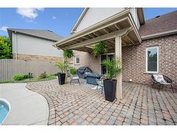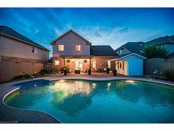 Stylishly Updated for Modern Living! Located in Guelphs sought-after south end, this beautifully upgraded home offers over 3,000 sqft of finished living space, including 3 bedrooms and 4 bathrooms perfect for todays busy family. With undeniable curb appeal, the home welcomes you with a charming covered porch and double-door entry into a bright, inviting foyer. The first floor boasts soaring 9-foot ceilings and hardwood floors, which continue throughout the second level. The formal dining room sets the tone for elegant entertaining, featuring full-height paneling, crown molding, and a striking contemporary chandelier.The heart of the home is the showstopping eat-in kitchen, complete with two-tone cabinetry, quartz countertops, stainless steel appliances, and a sunny breakfast area with walkout to the backyard. A cozy family room anchored by a gas fireplace and custom built-in bookshelves is the perfect space to unwind. Upstairs, rich hardwood flooring continues throughout, leading to the luxurious primary suite with a bay window, walk-in closet, and a spa-like 5-piece ensuite featuring a jetted Jacuzzi tub.The fully finished basement offers exceptional flexibility ideal for a home office, gym, playroom, or guest suite, complete with a full bathroom. Outside, the fully fenced yard is your private retreat, featuring an in-ground pool, mature landscaping, covered patio area, and an insulated pool house with hydro. Recent updates include a new pool liner, cover, heater, and equipment, as well as updated windows, furnace, AC, staircase, flooring, kitchen cabinetry, and much more!Located minutes from schools, parks, amenities, and the 401 this home truly has it all.