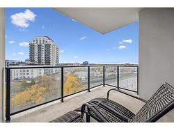 Welcome to RiverHouse, one of downtown Guelph's most sought-after condominium residences. This stylish turnkey suite pairs luxury finishes with an urban lifestyle just steps from the GO station, Sleeman Centre, Speed River and the city's best shops, dining, and downtown amenities. Inside, the open-concept layout is bright and inviting, with large windows and a private balcony showcasing panoramic city views. The kitchen features rich espresso cabinetry, granite countertops, stainless steel appliances, and an island with bar seating that flows seamlessly into the living and dining area. The living room offers elegant crown moulding, a fireplace feature, and sliding doors to the balcony - an ideal space for morning coffee or relaxing above the city. Both bedrooms are generously sized, with the primary suite offering floor-to-ceiling windows, a walk-in closet, and a spa-like ensuite with a glass-enclosed shower and stone vanity. A second full bathroom with a frameless glass shower serves guests and the secondary bedroom. Additional highlights include in-suite laundry, 2 underground parking spaces with an EV rough-in set up for future installation and a storage locker. RiverHouse provides a refined lifestyle with amenities such as a fitness centre, party room equipped with a bar/lounge, large outdoor terrace, and guest suite, all within a secure and well-managed building. A rare opportunity to experience upscale condominium living in the heart of Guelph's vibrant downtown core. All furniture can be purchased, see realtor remarks for further details.