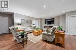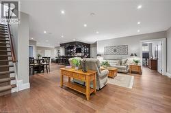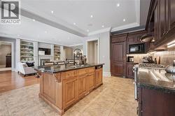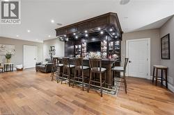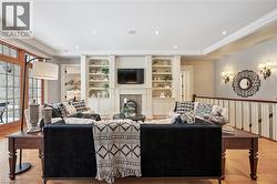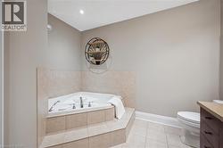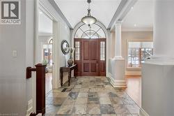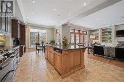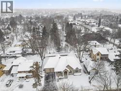 Rarely does a home offer both striking curb appeal and an exceptional location, and this one delivers on every front. Situated in one of Guelph's most desirable family neighbourhoods, steps to St. George's Park, this custom-built residence stands apart for its craftsmanship, thoughtful design, and timeless finishes. From the moment you arrive, the quality is unmistakable. The exterior is finished in Arriscraft Citadel stone, with limestone sills, arches, lintels, and door surrounds. Inside, 10' ceilings throughout the main floor, oversized crown moulding and baseboards, solid 8' interior doors, and a dramatic barrel-vaulted front entry set the tone. The open-concept kitchen is the heart of the home, featuring a large centre island, integrated office nook, and custom Barzotti cabinetry carried through to the bathrooms. The adjoining family room features built-in custom cabinetry, a gas fireplace, and floor-to-ceiling windows overlooking the rear patio, creating a seamless indoor-outdoor connection. The primary bedroom offers a luxurious retreat with a walk-in closet and a stunning 5-piece ensuite featuring a glass shower and a soaker tub. Two additional bedrooms, a 4-piece bathroom, main-floor laundry, and a convenient powder room complete this level. In-floor heating provides exceptional comfort throughout both the main floor and basement, as well as the concrete flooring in the garage. The lower level, alternatively accessed by a separate staircase from the garage, is extraordinarily spacious due to 9' foundation walls, no bulkheads, and clear spans with no support columns. This level includes an additional bedroom, an office, a full bathroom, an incredible bar area, and a home theatre with surround sound, ideal for entertaining or enjoying your favourite sporting events. Don't miss this rare opportunity to own a meticulously constructed home in one of Guelph's most coveted locations, where exceptional craftsmanship and refined living come together seamlessly. (id:7525)